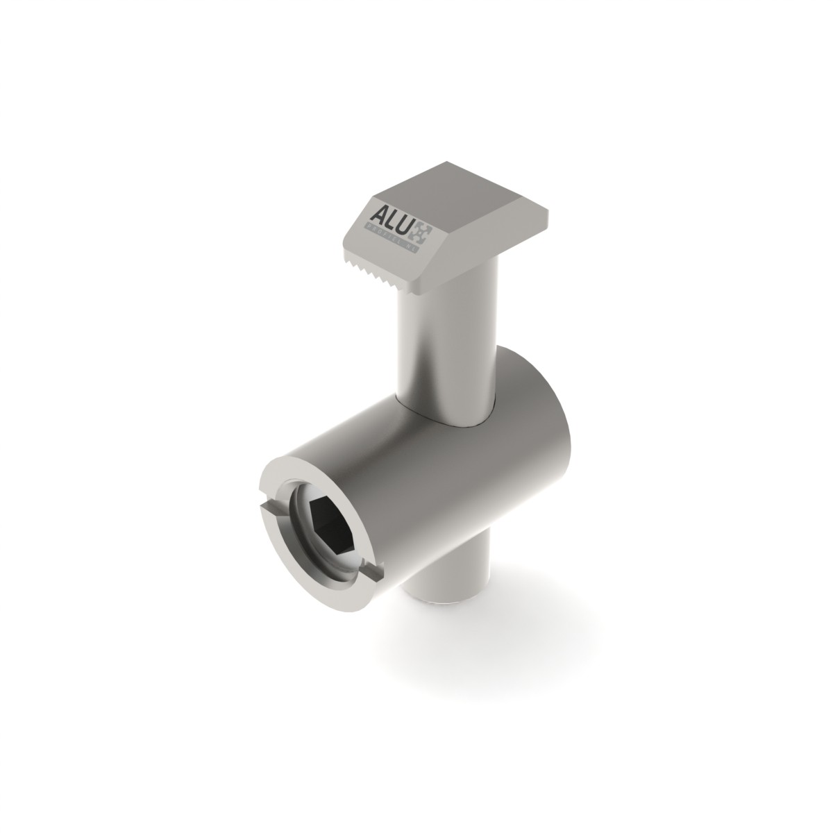 Łącznik centralny 0 stopni jest montowany w profilu. Wymaga to frezowania. Wszystkie rowki T pozostają otwarte podczas korzystania z tego łączenia, dzięki czemu bardzo łatwo możesz zamontować płyty w szczelinach. Opcję z zamontowanym łącznikiem w profilu możesz wybrać przy zakupie profili klikając w „frezowanie dla łączenia centralnego (incl.)”