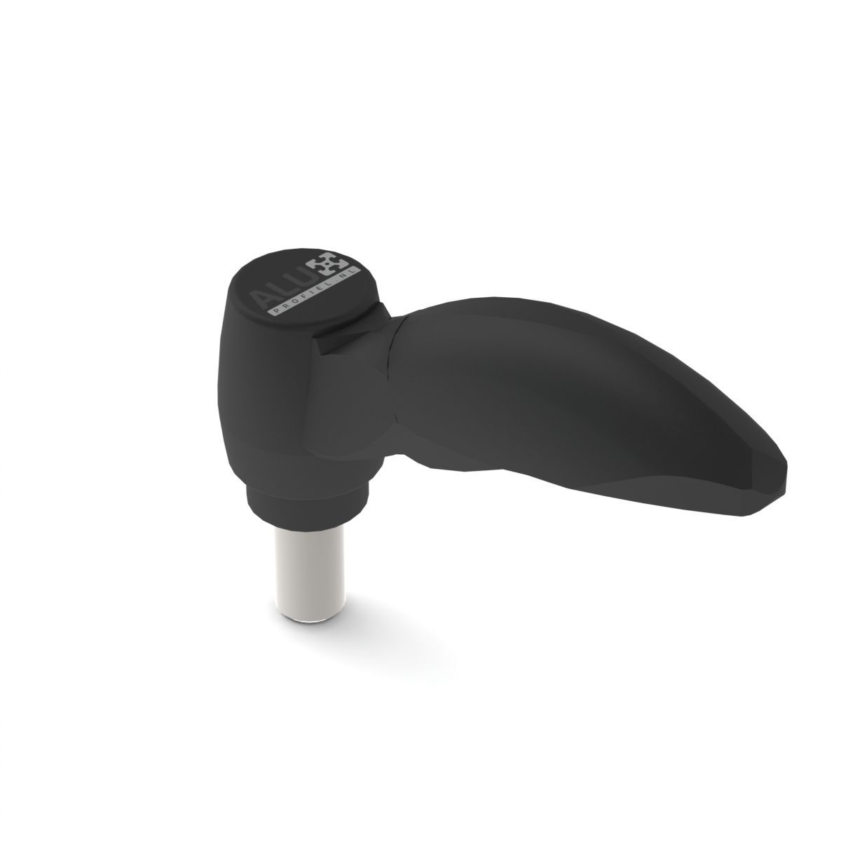 Za pomocą tej dźwigni zaciskowej możesz łatwo dokręcić i poluzować gwint M8. W przypadku zwykłej śruby imbusowej aby poluzować śrubę potrzebny jest klucz imbusowy, ale w przypadku tej dźwigni zaciskowej odbywa się to po prostu przez obrót uchwytu. Dociśnięcie rączki do dołu pozwala na jej swobodny obrót. Dźwignia zaciskowa ma gwint M8 i długość gwintu 20 mm.