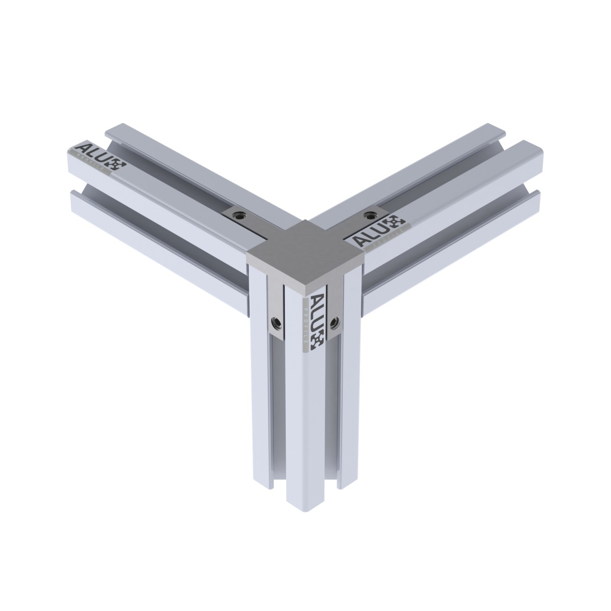 Łącznik wewnętrzny 3-stronny 3030 służy do łączenia trzech profili aluminiowych T-slot 30×30 mm pod kątem 90°. Dzięki montażowi wewnątrz profili połączenie jest estetyczne i niewidoczne, zachowując czysty wygląd konstrukcji.