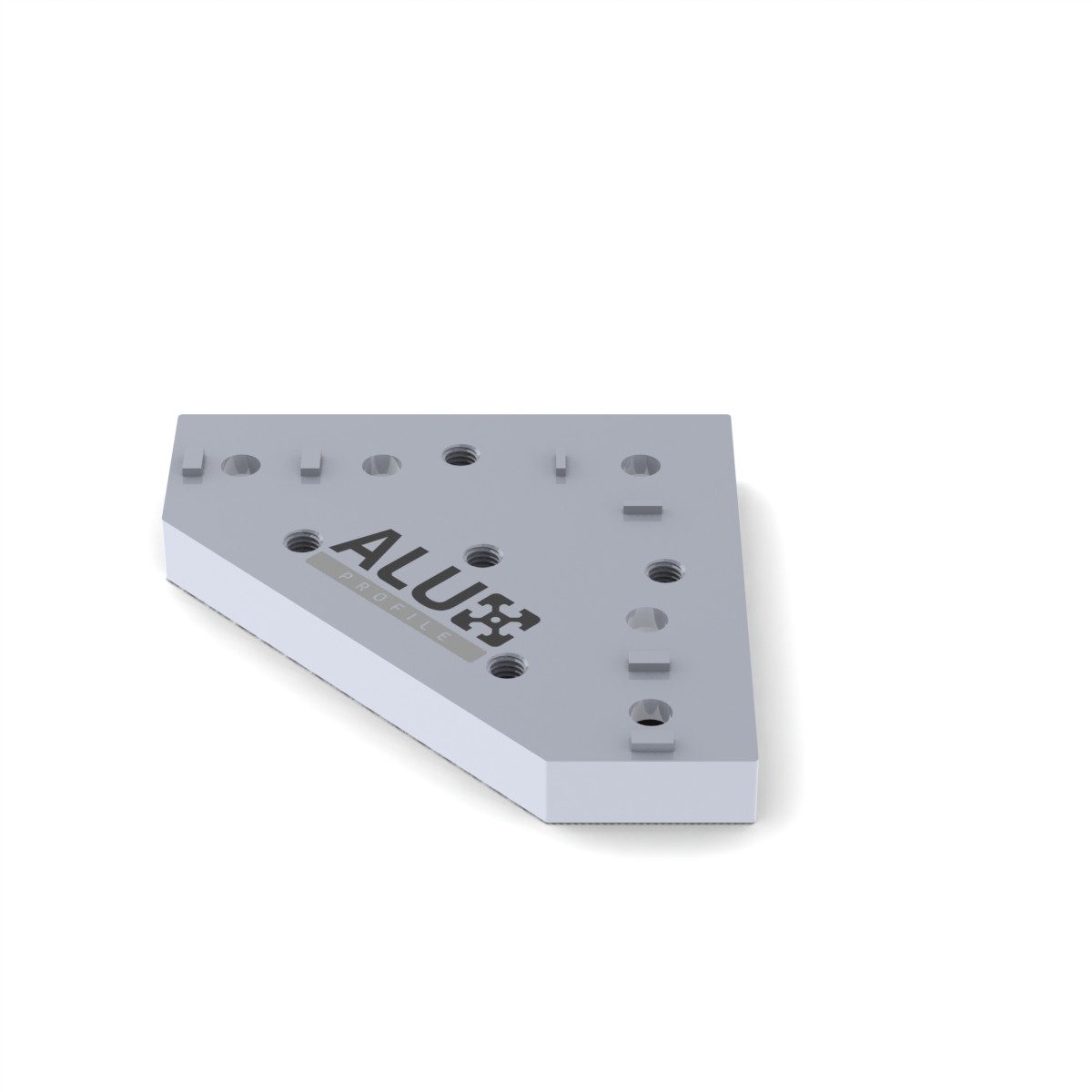 - Łączenie Profili: Posiada dedykowane otwory do łączenia nawet trzech profili aluminiowych 40x40 mm lub dwóch profili 40x80 mm i jednego profilu 40x40 mm w pozycji stojącej—umożliwia budowę solidnych, wielokierunkowych ram i konstrukcji.