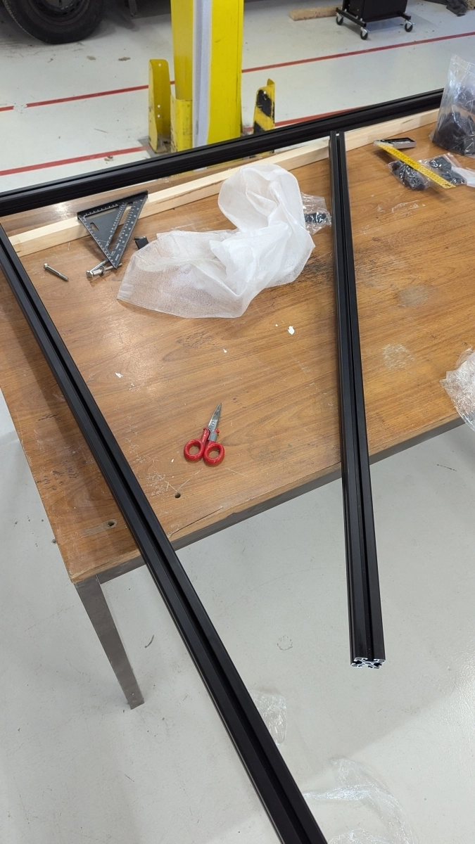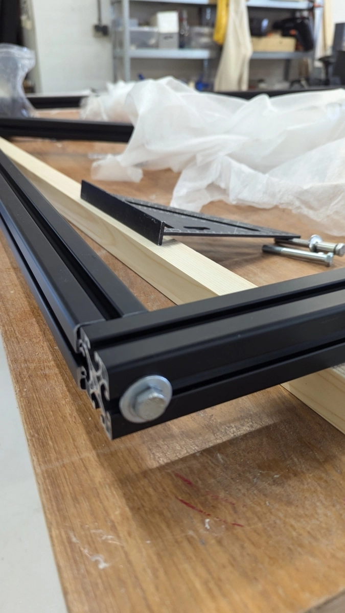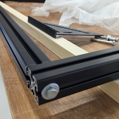 - Materiały montażowe: nakrętki T, śruby, kątowniki łączące