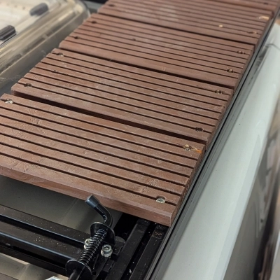 Zakończ konstrukcję, montując zaślepki na końcach profili i wtykając profile maskujące w rowki aluminiowe. Zapobiegnie to gromadzeniu się wody wewnątrz profili. Jeśli to konieczne, wywierć mały otwór w zaślepkach, aby umożliwić odpływ wody. Sprawdź dokładnie wszystkie punkty mocowania i dokręć je ponownie po pierwszych przejazdach.
