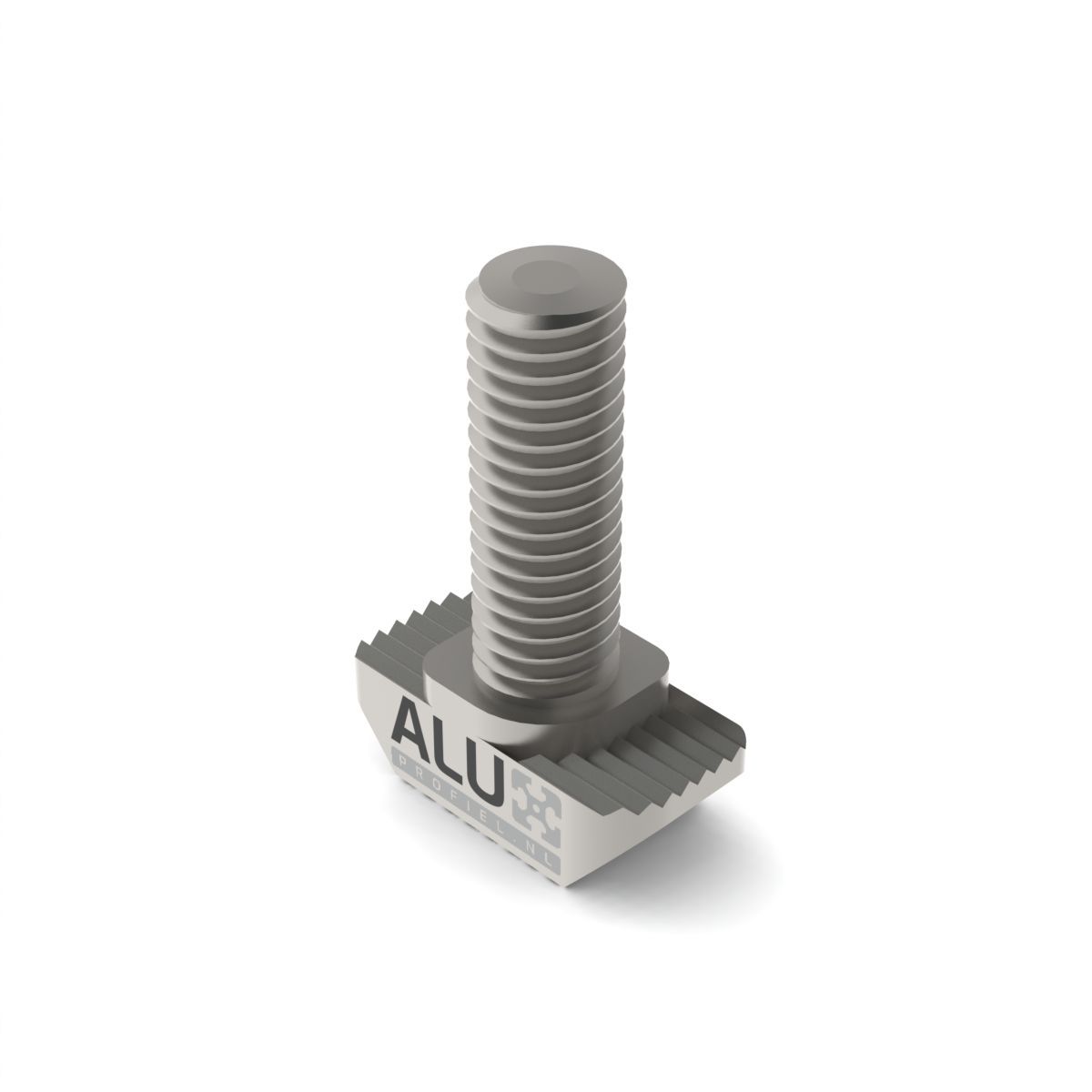 Ta śruba z łbem typu T Alux jest przeznaczona do łatwego montażu w profilach rowków T serii 30 i 40. T-śrubę można zainstalować w dowolnym miejscu wzdłuż rowka profilu, obracając śrubę, zablokujecie ją we właściwy sposób. Śruba ma rozmiar M6 i gwint o długości 25 mm. Rowek pozycjonujący na końcu śruby T wizualnie wskazuje, kiedy śruba jest prawidłowo umieszczona w rowku.