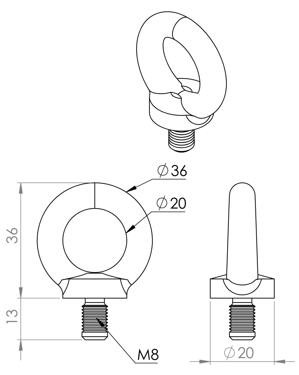 - Numer katalogowy: Śruba z uchem ISO 3266 M8 / DIN 580 M8